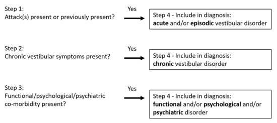 - During the fourth step, the diagnosis is established by explicitly taking into account the possibility of multiple co-occurring vestibular disorders.