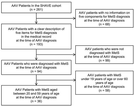 Algorithm for selection of the study subjects. AAV, ANCA-associated vasculitis; ANCA, antineutrophil cytoplasmic antibody; SHAVE, Severance Hospital ANCA-associated vasculitis; MetS, metabolic syndrome.