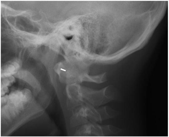 - Lustrin, E.S.; Karakas, S.P.; Ortiz, A.O.; Cinnamon, J.; Castillo, M.; Vaheesan, K.; Brown, J.H.; Diamond, A.S.; Black, K.; Singh, S. Pediatric cervical spine: Normal anatomy, variants, and trauma. Radiogr. Rev. Publ. Radiol. Soc. N. Am. Inc. 2003, 23, 539–560. [Google Scholar] [CrossRef]