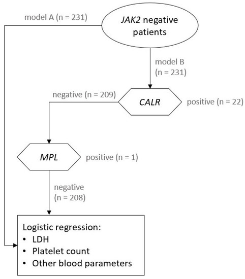 Belčič Mikič, T.; Vratanar, B.; Pajič, T.; Anžej Doma, S.; Debeljak, N.; Preložnik Zupan, I.; Sever, M.; Zver, S. Is It Possible to Predict Clonal Thrombocytosis in Triple-Negative Patients with Isolated Thrombocytosis Based Only on Clinical or Blood Findings? J. Clin. Med. 2021, 10, 5803. https://doi.org/10.3390/jcm10245803