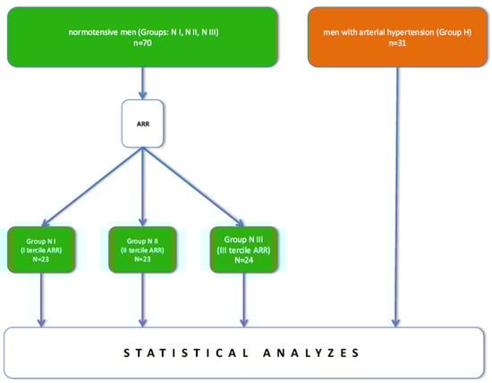 | I Tercile ARR (NI) | II Tercile ARR (NII) | III Tercile ARR (NIII) | Arterial Hypertension (H) | p Value | |