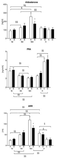 - Weber, M.A. Interrupting the renin-angiotensin system: The role of angiotensin-converting enzyme inhibitors and angiotensin II receptor antago-nists in the treatment of hypertension. Am. J. Hypertens. 1999, 12, 189S–194S. [Google Scholar] [CrossRef]