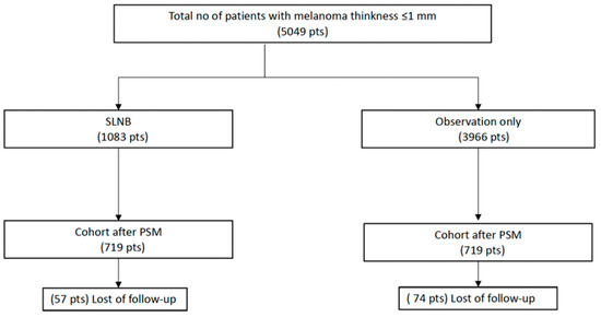 - Sinnamon, A.J.; Gimotty, P.A.; Karakousis, G.C.; Yang, Y.X. Survival Outcomes Following Lymph Node Biopsy in Thin Melanoma—A Propensity-Matched Analysis. Ann. Surg. Oncol. 2021, 28, 1634–1641. [Google Scholar] [CrossRef] [PubMed]