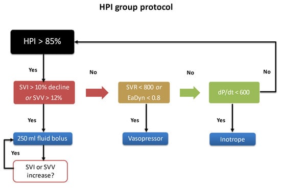 Attending anesthesiologists were informed about the study protocol and use of the HPI prior to initiation of the procedure. Intraoperatively, an observer was present to record surgery- and anesthesia-related details. In the intervention arm, when the HPI was above 85, the attending anesthesiologist was instructed as per the study protocol to act upon this immediately based on our study algorithm (Figure 1). Use of the study treatment algorithm ensured that the anesthesiologist had to think about the underlying cause and act accordingly. The study treatment algorithm was inspired by Pinsky [].