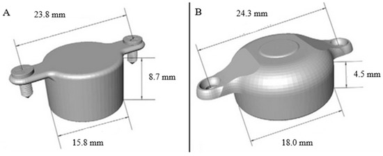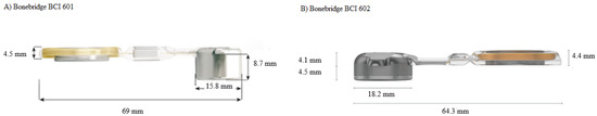 Bonebridge implants; (A)—First-generation (BCI 601); (B)—Second-generation (BCI 602) [21].