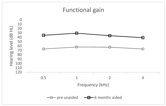 Functional gain; unaided and 6 months aided.