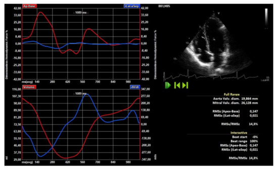 - Muraru, D.; Cucchini, U.; Mihăilă, S.; Miglioranza, M.H.; Aruta, P.; Cavalli, G.; Cecchetto, A.; Padayattil-Josè, S.; Peluso, D.; Iliceto, S.; et al. Left Ventricular Myocardial Strain by Three-Dimensional Speckle-Tracking Echocardiography in Healthy Subjects: Reference Values and Analysis of Their Physiologic and Technical Determinants. J. Am. Soc. Echocardiogr. 2014, 27, 858–871.e1. [Google Scholar] [CrossRef] [PubMed]