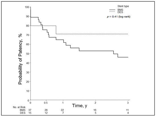 | Variable | Drug-Eluting (n = 15) | Bare-Metal (n = 37) | Total (n = 52) |