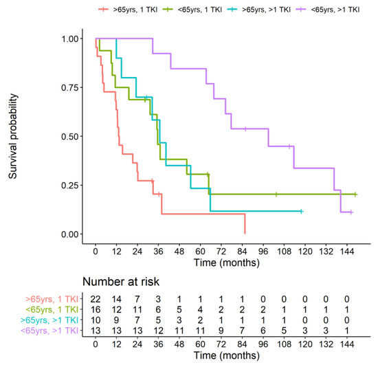 3.5. Overall Survival Based on the Age of TKI Treatment Start