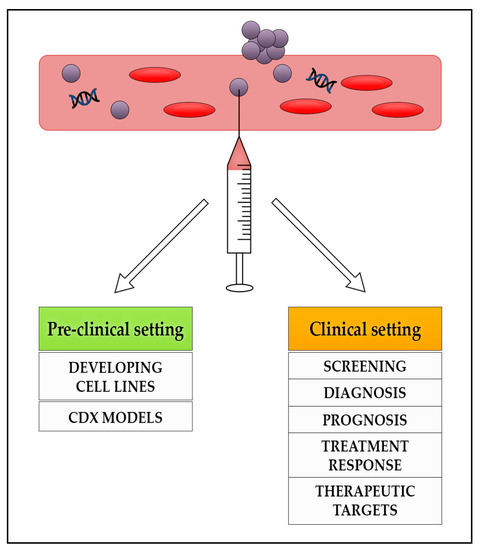 - Lallo, A.; Schenk, M.W.; Frese, K.K.; Blackhall, F.; Dive, C. Circulating tumor cells and CDX models as a tool for preclinical drug development. Transl. Lung Cancer Res. 2017, 6, 397. [Google Scholar] [CrossRef] [PubMed]