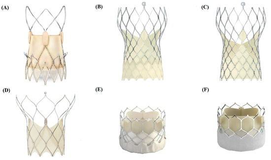 TAVI valves included in the current study. (A) Acurate Neo (Boston Scientific SciMed Inc, Maple Grove, MN, USA); (B) Evolut PRO (Medtronic, Minneapolis, MN, USA); (C) Evolut R (Medtronic, Minneapolis, MN, USA); (D) Portico® valve (St. Jude Medical, St. Paul, MN, USA); (E) SAPIEN 3 (Edwards Lifesciences, Irvine, CA, USA); (F) SAPIEN 3 Ultra (Edwards Lifesciences, Irvine, CA, USA).