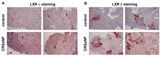 3.1. LXRα and β Expression and Lipid/Fat Deposition in CRSsNP Nasal Mucosae