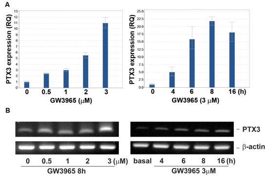 3.2. GW3965 Enhances PTX3 Protein and mRNA Expression