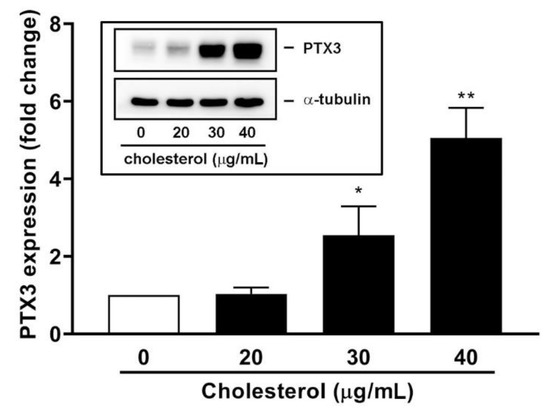3.4. An Endogenous LXR Agonist-Cholesterol Induces PTX3 Expression