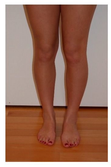 A physical examination in a standing position shows that patients with increased femoral antetorsion, in most cases, have inward pointed knees and the knee joint faces medially when the foot is in a normal position (Figure 1).