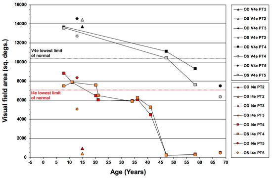 3.2. Kinetic Visual Field Decay over Time in ESCS
