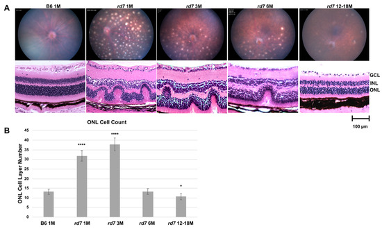 3.3. Longitudinal Study of rd7 Retinal Degeneration Shows a Slow Progression of Disease