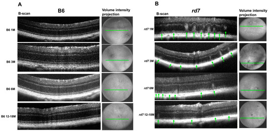 - Akhmedov, N.B.; Piriev, N.I.; Chang, B.; Rapoport, A.L.; Hawes, N.L.; Nishina, P.M.; Nusinowitz, S.; Heckenlively, J.R.; Roderick, T.H.; Kozak, C.A.; et al. A deletion in a photoreceptor-specific nuclear receptor mRNA causes retinal degeneration in the rd7 mouse. Proc. Natl. Acad. Sci. USA 2000, 97, 5551–5556. [Google Scholar] [CrossRef] [PubMed]