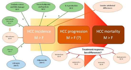 The biological grounds underlying sex disparity in the incidence, progression and mortality of HCC are incompletely understood and probably related to multiple factors pertaining to individual life habits and endocrine-metabolic factors, as well as to cancer biology per se.