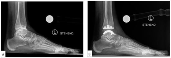 - Younger, A.; Veljkovic, A. Current Update in Total Ankle Arthroplasty: Salvage of the Failed Total Ankle Arthroplasty with Anterior Translation of the Talus. Foot Ankle Clin. 2017, 22, 301–309. [Google Scholar] [CrossRef]