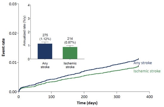 The rates of strokes and other thromboembolic events were low in the Global Edoxaban Treatment in routiNe clinical prActice (ETNA)-atrial fibrillation (AF) program. The 1-year annualized event rates were 1.12% for any stroke and 0.87% for ischemic stroke (Figure 2).