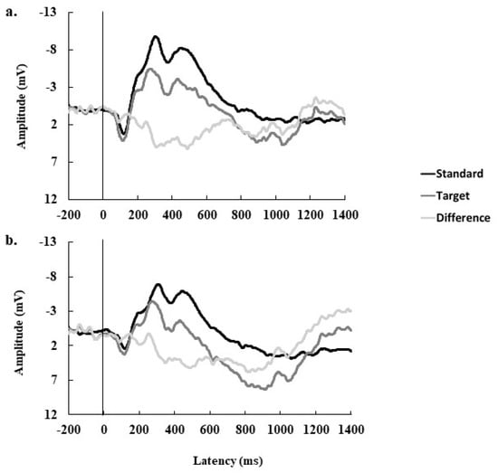 - Tomé, D.; Barbosa, F.; Nowak, K.; Marques-Teixeira, J. The development of the N1 and N2 components in auditory oddball paradigms: A systematic review with narrative analysis and suggested normative values. J. Neural Transm. 2015, 122, 375–391. [Google Scholar] [CrossRef]