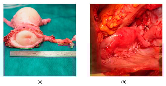 - Kristek, J.; Kudla, M.; Chlupac, J.; Novotny, R.; Mirejovsky, T.; Janousek, L.; Fronek, J. Acute appendicitis in a patient after a uterus transplant: A case report. World J. Clin. Cases 2019, 7, 4270–4276. [Google Scholar] [CrossRef]