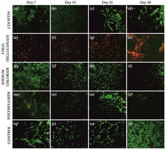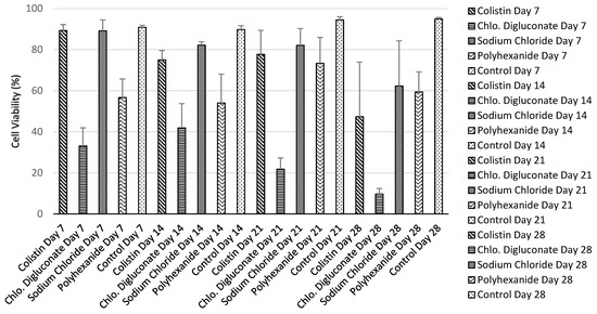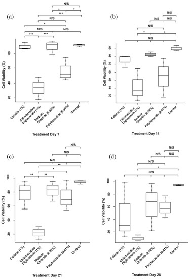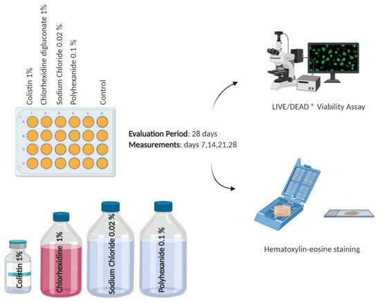- Liu, J.X.; Werner, J.; Kirsch, T.; Zuckerman, J.D.; Virk, M. Cytotoxicity evaluation of chlorhexidine gluconate on human fibroblasts, myoblasts, and osteoblasts. J. Bone Jt. Infect. 2018, 3, 165–172. [Google Scholar] [CrossRef]