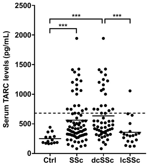 3.2. Clinical Association of Serum TARC Levels in SSc Patients
