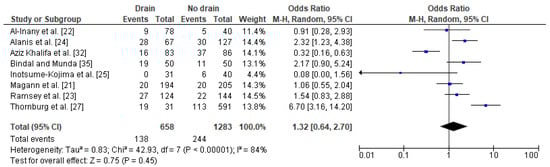 - Coletta, D.; Del Basso, C.; Giuliani, G.; Guerra, F. Subcutaneous Suction Drains Do Not Prevent Surgical Site Infections in Clean-Contaminated Abdominal Surgery-Results of a Systematic Review and Meta-analysis. Langenbecks Arch. Surg. 2019, 404, 663–668. [Google Scholar] [CrossRef]