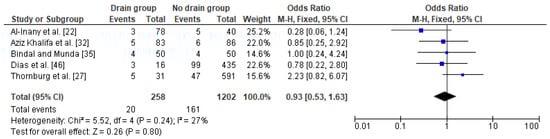 - Bindal, J.A.; Munda, G. Clinical Study to Compare Drain versus No Drain in Post Cesarean Section. Int. J. Reprod. Contracept. Obstet. Gynecol. 2017, 6, 3903–3906. [Google Scholar] [CrossRef]