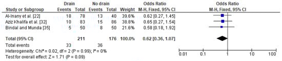 - Khalifa, A.A.A.; Abdelrazak, K.M.; Abdelazim, I.A. Routine Subcutaneous Drain versus No Drain in Cesarean Section for Diabetic Obese Women: A Randomized Controlled Trial. Int. J. Curr. Microbiol. App. Sci. 2015, 4, 479–485. [Google Scholar]