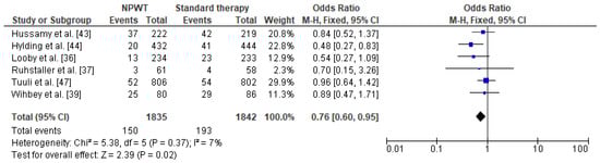 | Looby et al. [36] | 467 | ≥40 | NPWT 13/234 SD 23/233 | 0.45 (0.22–0.95) | NPT after caesarean delivery in women with a BMI of ≥40 kg/m2 is an efficacious method to reduce the incidence of postoperative wound infections |