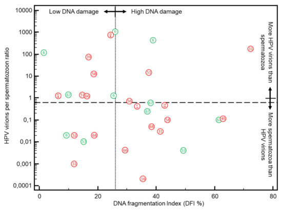 - Connelly, D.A.; Chan, P.J.; Patton, W.C.; King, A. Human sperm deoxyribonucleic acid fragmentation by specific types of papillomavirus. Am. J. Obs. Gynecol. 2001, 184, 1068–1070. [Google Scholar] [CrossRef]