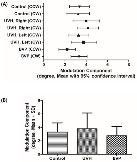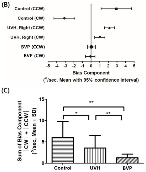 Figure 2B). This difference mainly arose due to a reduction of BIC values during affected side rotation: The absolute BIC value was reduced with OVAR to the affected side compared with the unaffected side (CW in right UVH patients and CCW in left UVH patients).