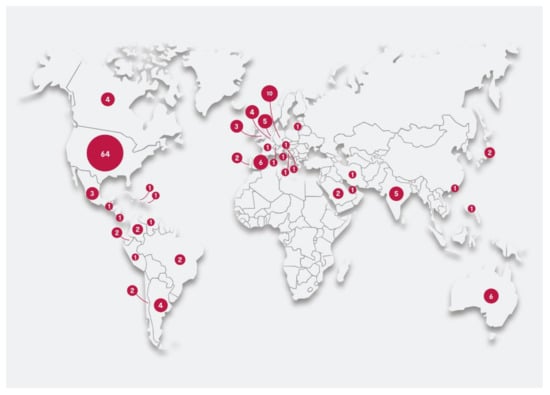 A total of 145 centers across five continents responded (response rate 63%). Of the survey respondents, 64 (44%) were located in the US (Figure 1 and Table 1), 37 (26%) were European, and 44 (30%) were from other areas.