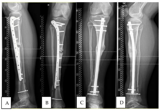 - Pelissier, P.; Boireau, P.; Martin, D.; Baudet, J. Bone Reconstruction of the Lower Extremity: Complications and Outcomes. Plast. Reconstr. Surg. 2003, 111, 2223–2229. [Google Scholar] [CrossRef]