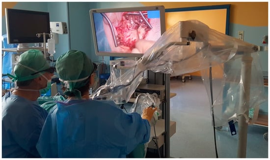 The main advantages of the exoscope include high-resolution 3D images, a greater degree of freedom for the exoscope adjustment, and a comfortable surgical posture [,]. What is more, in our sample, the 3D exoscope did not require more surgical time than the operating microscope.