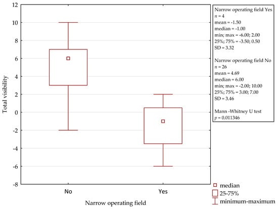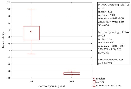 Statistica software (v.13, TIBCO Software, Palo Alto, CA, United States) was used to perform the statistical analysis. The test of proportion was used to compare the visibility provided by the exoscope with the one provided by the microscope throughout the procedure and in the particular steps of the surgery. Due to the lack of a normal distribution for the total visibility variable, the Mann–Whitney test was used for comparison of normal and difficult operating conditions (intraoperative bleeding and narrow operating field). The level of statistical significance was set at p < 0.05.
