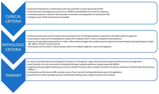- Moura, K.B.D.A.; Behrens, P.M.P.; Pirolli, R.; Sauer, A.; Melamed, D.; Veronese, F.; Da Silva, A.L.F.A. Anticoagulant-related nephropathy: Systematic review and meta-analysis. Clin. Kidney J. 2019, 12, 400–407. [Google Scholar] [CrossRef]