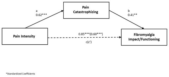 3.4. Mediation of the Relationship between Pain and Fibromyalgia Functioning