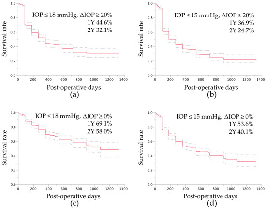 Figure 1a), and the rates of 15 mmHg or lower and IOP reductions of 20% or more were 36.9% and 24.7% at postoperative years 1 and 2, respectively (