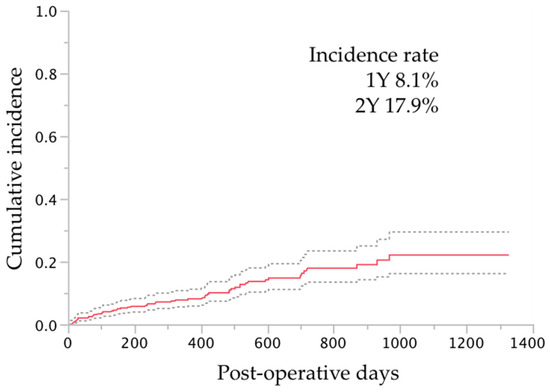 Figure 2. Additional surgeries were performed at 303 ± 264 days (range, 8–968 days) after the µLOT procedure.