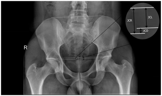 X-rays to quantify difference in the joint clearance. JCD: Joint clearance discrepancy; JCL: Joint clearance left; JCR: Joint clearance right.
