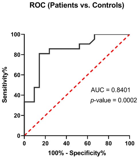 ROC analysis of COVID-19 samples compared to healthy individuals. The analysis showed a significant diagnostic value for Arg1 gene expression.