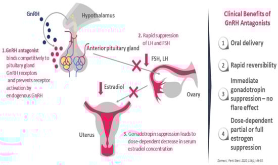 - Donnez, O.; Donnez, J. Gonadotropin-releasing hormone antagonist (linzagolix): A new therapy for uterine adenomyosis. Fertil. Steril. 2020, 114, 640–645. [Google Scholar] [CrossRef]
