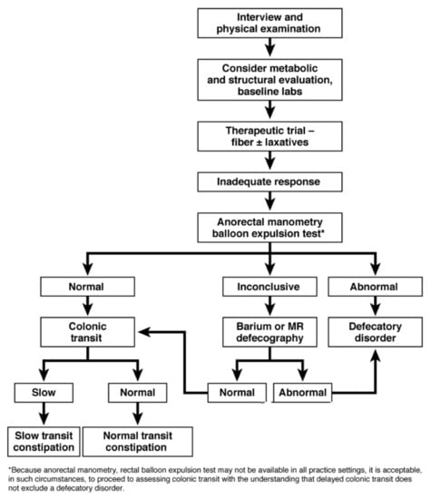 - Bharucha, A.E.; Dorn, S.D.; Lembo, A.; Pressman, A. American gastroenterological association medical position statement on constipation. Gastroenterology 2013, 144, 211–217. [Google Scholar] [CrossRef] [PubMed]