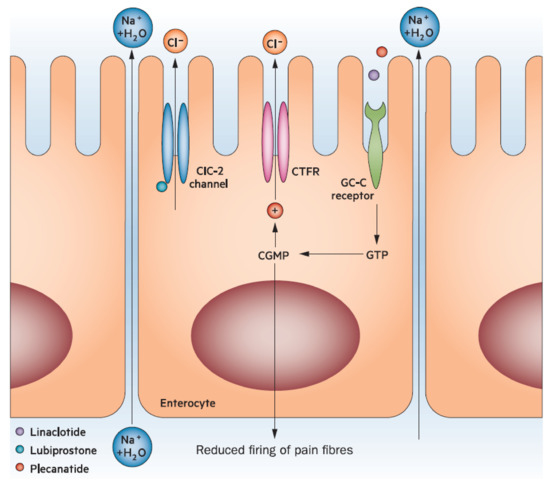 - Waldman, S.A.; Camilleri, M. Guanylate cyclase-C as a therapeutic target in gastrointestinal disorders. Gut 2018, 67, 1543–1552. [Google Scholar] [CrossRef]