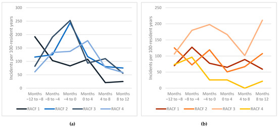 Medication incident rates in individual intervention (a) and comparison (b) residential aged care facilities. RACF: Residential aged care facility.
