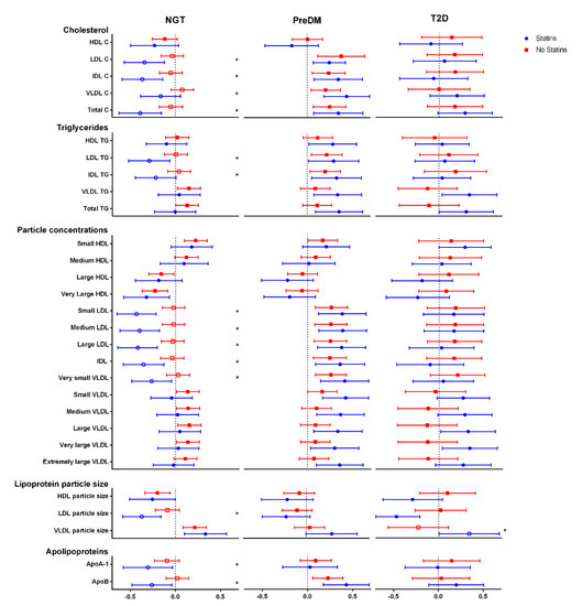 In addition, the associations were estimated stratifying on statin therapy between different glucose profiles. A p-value of p < 0.05 was considered statistically significant. Statistical analyses were conducted using the free software package R 4.0.2 (https://www.r-project.org/ (accessed on 21 January 2021)).